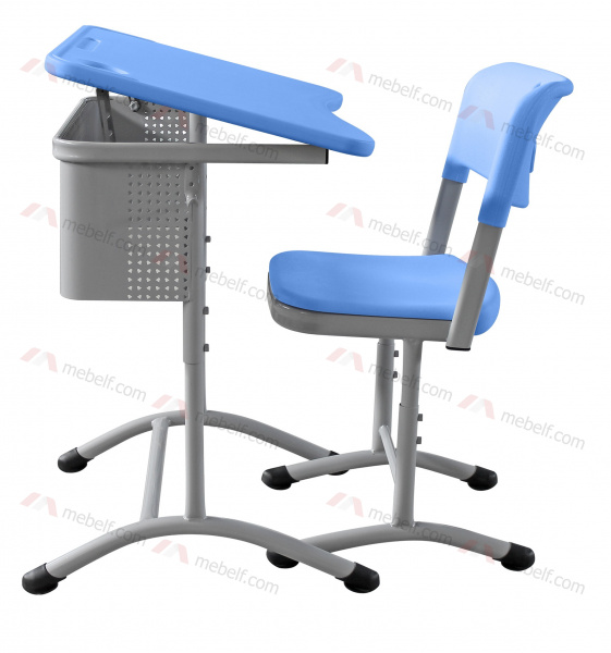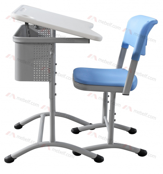 | Школьный стол с наклонной столешницей ШСТ15 и стул ШС01, синий и серый |